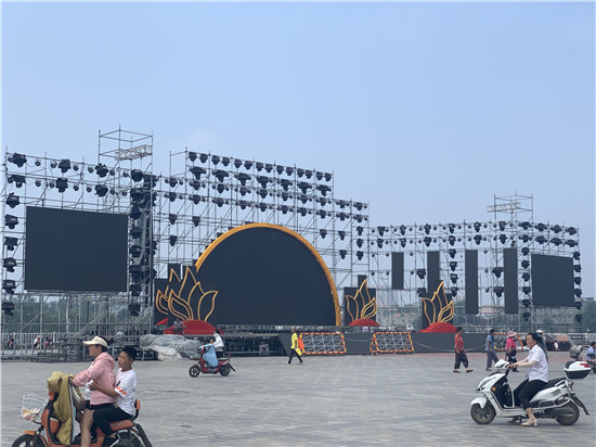淮陽荷花節(jié)開幕式舞臺在太昊陵廣場廣場造型完工。據(jù)悉,2020年7月10日晚8點在此開幕,同時在舞臺東側(cè)的龍湖上將上演全息水幕燈光秀。