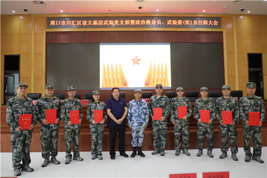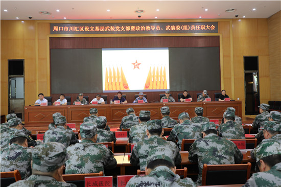 黨管武裝建設國防,軍民攜手共筑長城。為健全武裝工作組織領導體系為推動國防動員和后備力量建設在基層末端落實,7月16日上午,周口市川匯區(qū)召開基層武裝黨支部暨政治教導員、武裝委(組)員任職大會。周口軍分區(qū)司令員湯維政,區(qū)委書記、區(qū)人武部黨委第一書記李宗喜,市委組織部處級干部宋陽,區(qū)人武部政委高新傳、部長陳繼芳及城鄉(xiāng)一體化示示范區(qū)、經(jīng)濟開發(fā)區(qū)、港口物流產(chǎn)業(yè)聚集區(qū)等有關負責同志參加了大會。會上設立了18個基層武裝黨支部,任命了15名基層武裝部政治教導員、20名村(社區(qū))武裝委(組)員任職命令,武裝部政治教導員、武裝預建黨支部書記和兼職武裝委(組)員代表先后作了履職承諾發(fā)言,湯維政等為新任命的人員頒發(fā)了任職證書。