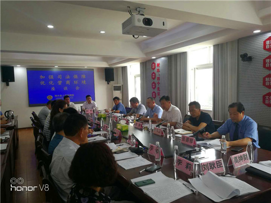 7月28日上午,商水縣加強司法保障、優(yōu)化營商環(huán)境座談會在縣檢察院會議室舉行。縣政協(xié)副主席、工商聯(lián)主席彭發(fā)光,縣檢察院黨組書記、檢察長顧濤,縣公安局政委程寶峰,縣法院副院長張華衛(wèi)、縣工商聯(lián)副主席兼秘書長王志成等領導及全縣近20家重點民營企業(yè)負責人參加了座談會。