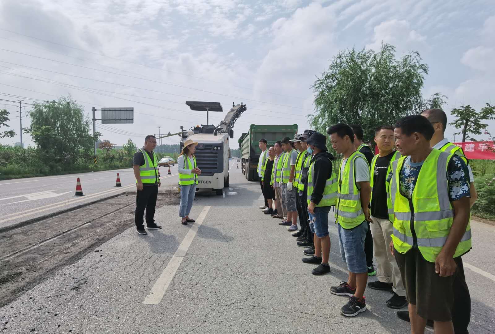 接到搶險任務(wù)后,市公路橋梁應(yīng)急搶險中心迅速啟動,在較短的時間內(nèi)到達現(xiàn)場進行搶險作業(yè),施工人員按照公路養(yǎng)護安全作業(yè)規(guī)程設(shè)置了作業(yè)控制區(qū),對交通進行了有效管制疏導(dǎo);施工搶修人員以人機結(jié)合的方式對坑槽病害進行了填補和修整。演練期間人員著裝規(guī)范,交通警示標(biāo)志、告示牌、作業(yè)機械設(shè)備齊全、完好。操作流程符合作業(yè)規(guī)范,現(xiàn)場安全文明施工措施到位,展示了良好的應(yīng)急事件處置能力。此次演練參戰(zhàn)干部職工共計34人,指揮車1輛、銑刨機、攤鋪機、壓路機、抑塵機、霧炮車等機械設(shè)備參與應(yīng)急演練。有效檢驗了在遇到突發(fā)事件時組織、協(xié)調(diào)、配合的快速反應(yīng)能力以及熟練處置突發(fā)事件的方法、過程,進一步驗證了公路水毀病害應(yīng)急預(yù)案的可執(zhí)行性,為今后突發(fā)公路安全事故應(yīng)急救援積累了寶貴的實戰(zhàn)經(jīng)驗。
