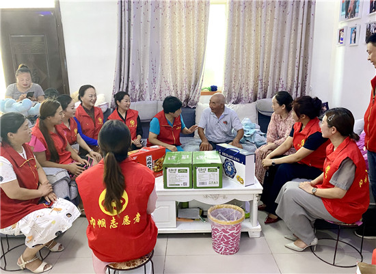 當(dāng)日下午,志愿者及愛心商家一行20多人,在駐村干部及村支部書記陪同下,來到遲營鄉(xiāng)順河村走訪慰問退伍老兵和老黨員,為他們送去豆奶、八寶粥、飲料、糕點(diǎn)等慰問品。大家不顧酷暑高溫天氣,走村入戶,一家一家地走訪,為退伍老兵送去節(jié)日的問候,聆聽老兵講述那艱苦卓絕的戰(zhàn)爭和轟轟烈烈社會(huì)主義建設(shè)的歲月,讓他們感受到黨和政府及社會(huì)的關(guān)懷關(guān)愛,受到好評(píng)。