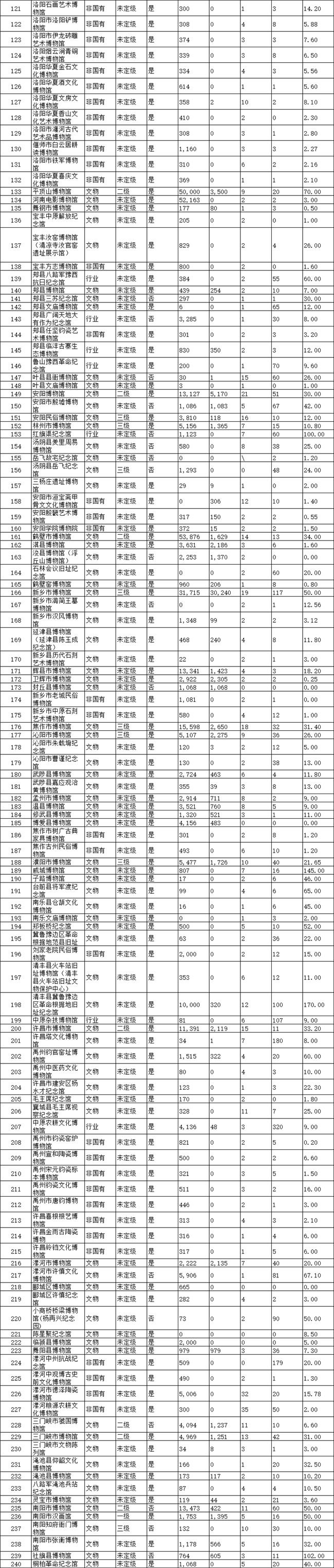 日前,《2019年度河南省博物館名錄》(以下簡稱《名錄》)對外公布。根據(jù)《名錄》,截至2019年底,河南省共有348家博物館,年接待觀眾達7174萬人次。周口市及下轄縣、區(qū)收入《名錄》博物館18家,年接待觀眾472.14萬人次。