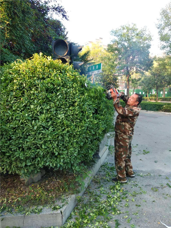 8月28日上午,沈丘縣城管局園林綠化工人克服高溫和蚊蟲叮咬,為尚德路上兩側(cè)綠化帶修枝整葉,清理雜草,精心打扮后,整條路更加整潔美麗。據(jù)悉,為全面提高該縣城市綠化管理水平,提升城市形象,連日來,園林綠化大隊(duì)以“城鎮(zhèn)環(huán)境大整治、城鎮(zhèn)面貌大提升”秋季集中攻堅(jiān)行動(dòng)為抓手,強(qiáng)勢(shì)推進(jìn)園林綠化環(huán)境整治。