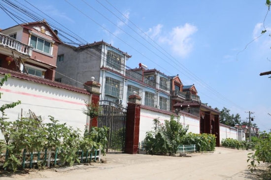 “整治后的坑塘邊綠村成蔭,不時有小鳥掠過水面又飛回樹梢;村頭巷尾、花開四季,孩童們在村中追逐嬉鬧,老人們在村道上怡然自得地徜徉散步,歡笑不斷;群眾文化廣場上,村民集聚在這里休閑、娛樂、健身,成了村里人氣最旺的地方。”另一個具有代表性的鄉(xiāng)村振興新版本是馬鋪鎮(zhèn)最南端軍吳行政村,這個村子位于惠濟河北岸,207省道橫穿南北,轄軍吳,高口,高莊,吳樓,許莊,王莊,豆腐營七個自然村,耕地面積4288畝,總?cè)丝跀?shù)4236人。近年來,這個村子除大力發(fā)展中藥材、蔬菜等經(jīng)濟作物種植外,還以“二四四”工程和“雙強”村創(chuàng)建為抓手,開展“美麗鄉(xiāng)村”行動,打造美麗庭院,對村中主次道路進行硬化、綠化、美化、亮化,發(fā)展以生態(tài)為底色的宜居宜游農(nóng)旅村落,成為鹿邑縣首批“千萬工程”示范村。