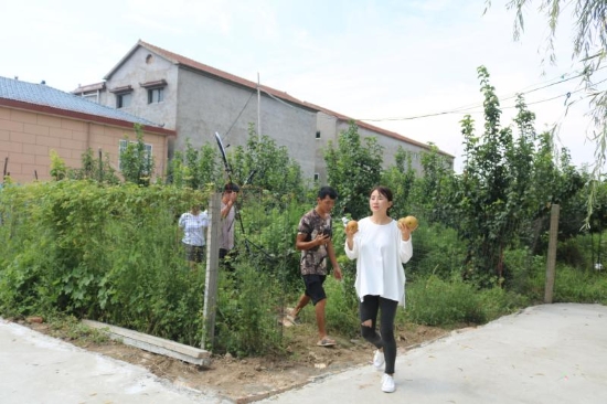 上任伊始,許天勇充分利用水域面積大的優(yōu)勢,發(fā)展鄉(xiāng)村旅游經(jīng)濟,把整理出來的水域種上了荷花,放上了魚苗,在村里還建起了四橦民宿建筑,在廣場邊村里統(tǒng)一管理的一處民宿內(nèi)興辦了特色餐飲,讓來這里垂釣的人有得玩、有得吃、還有得住。許天勇指著許莊村頭的一處坑塘說:“這是我們治理出來比較大的一處,鎮(zhèn)里牽頭在坑塘兩側(cè)建起了扶貧富民冷庫,還建成1200多平方米的游園、近3000平方米的垂釣園,另外,村里又把平整出14.2畝土地種上的梨樹,承包給村民進行果蔬間作,現(xiàn)在梨樹已進入盛果期,預計今年凈收益4萬元左右?!?/p>