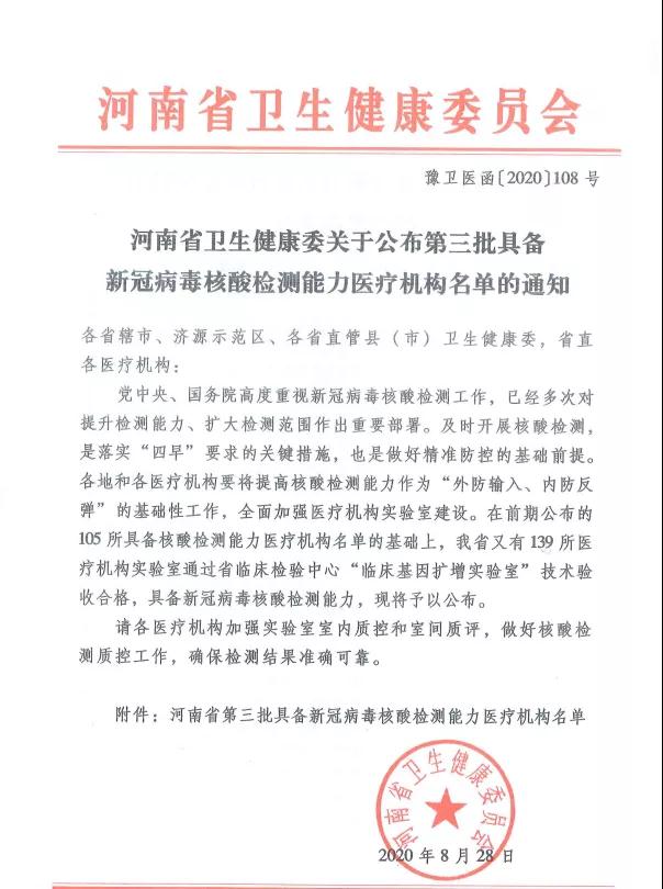 近日,鄲城縣婦幼保健院PCR核酸檢測(cè)實(shí)驗(yàn)室通過(guò)了河南省臨床檢驗(yàn)中心的室間質(zhì)量評(píng)價(jià)和實(shí)驗(yàn)室二級(jí)生物安全備案,已具備新冠病毒核酸檢測(cè)能力,可承擔(dān)新冠病毒核酸檢測(cè)工作。目前,各高校正在陸續(xù)開(kāi)學(xué),但新冠疫情仍未完全控制,按照疫情防控要求,報(bào)到學(xué)生需進(jìn)行一次核酸檢測(cè),持報(bào)告單入學(xué)報(bào)到。鄲城縣婦幼保健院作為河南省衛(wèi)生健康委員會(huì)批準(zhǔn)的新冠核酸檢測(cè)機(jī)構(gòu),積極承擔(dān)社會(huì)責(zé)任,按照“應(yīng)檢盡檢,愿檢盡檢”的原則,已經(jīng)于2020年9月1日起正式開(kāi)展新冠病毒核酸檢測(cè)工作,希望廣大學(xué)子及有檢測(cè)需要的人員,本著對(duì)自己負(fù)責(zé)、對(duì)家庭負(fù)責(zé)、對(duì)社會(huì)負(fù)責(zé)的原則,積極檢測(cè),為疫情防控工作貢獻(xiàn)力量。