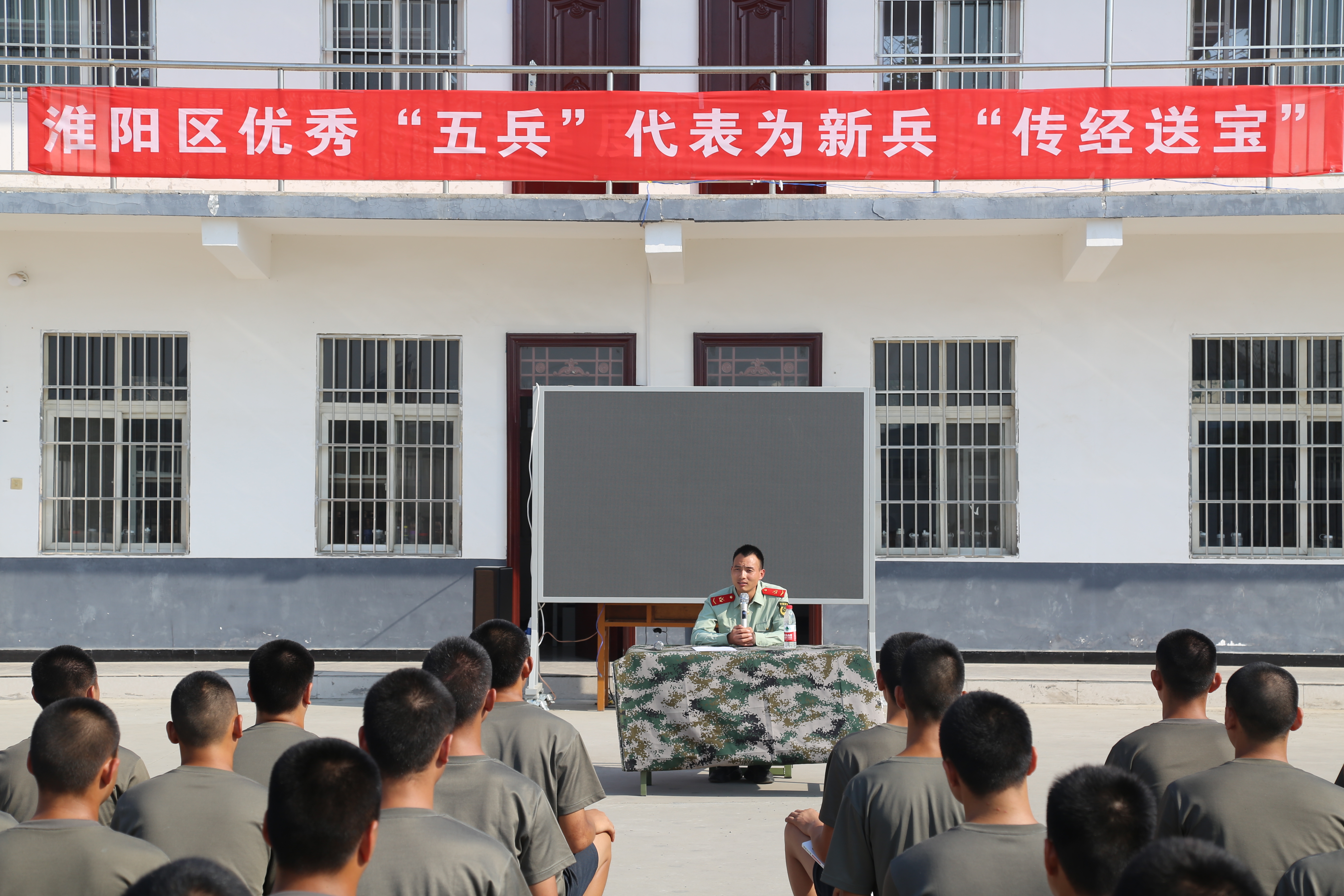 為了進(jìn)一步激發(fā)新兵的工作訓(xùn)練熱情,堅定新戰(zhàn)士立足軍營,獻(xiàn)身國防的信念。9月8日,在年度新兵即將起運之際,淮陽區(qū)人武部組織優(yōu)秀“五兵”代表(參戰(zhàn)老兵、現(xiàn)役士兵、退役士兵)為新兵“傳經(jīng)送寶”活動,300余名新兵一起聆聽優(yōu)秀“五兵”代表精彩講課。