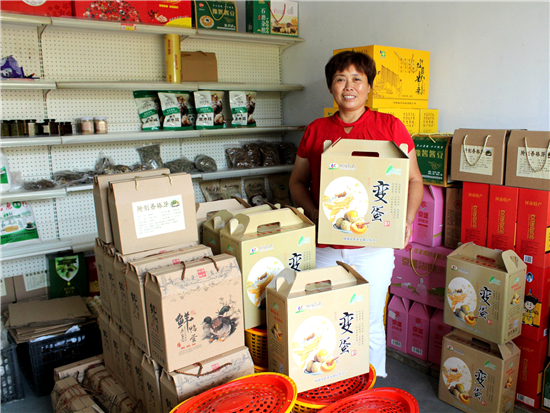 幾年前,孔粉蓮曾干過建材生意,賣過油漆、涂料等,但最讓她得心應(yīng)手的還是經(jīng)營當?shù)氐霓r(nóng)特產(chǎn)品。她在村里開了一家小門店,代銷當?shù)氐暮睖?、石磨面、食用菌、紅薯粉條等,顧客贏門,生意很是紅火。