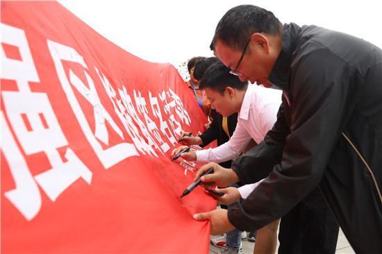 儀式上,周口市文明誠(chéng)信企業(yè)、周口市港潤(rùn)精密工業(yè)有限公司負(fù)責(zé)人翟振以“守初心、擔(dān)使命,推動(dòng)高質(zhì)量發(fā)展”為題,向全區(qū)廣大企業(yè)、商戶發(fā)出開(kāi)展質(zhì)量月活動(dòng)、實(shí)施質(zhì)量強(qiáng)區(qū)倡議。