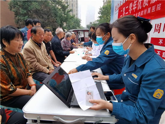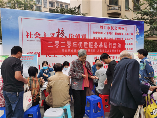 9月25日早上,周口市城鄉(xiāng)一體化示范區(qū)文昌社區(qū)衛(wèi)生服務(wù)中心的醫(yī)務(wù)人員在建業(yè)小區(qū)為居民測量血壓,并建立健康檔案。為滿足社區(qū)廣大群眾基本醫(yī)療衛(wèi)生服務(wù)需求,更貼心為轄區(qū)居民的服務(wù),文昌社區(qū)衛(wèi)生服務(wù)中心開展2020年優(yōu)質(zhì)服務(wù)基層行活動,文昌社區(qū)衛(wèi)生服務(wù)中心組織醫(yī)務(wù)人員不定時走進(jìn)各個小區(qū),為居民進(jìn)行基礎(chǔ)項(xiàng)目體檢,并建立居民健康檔案。