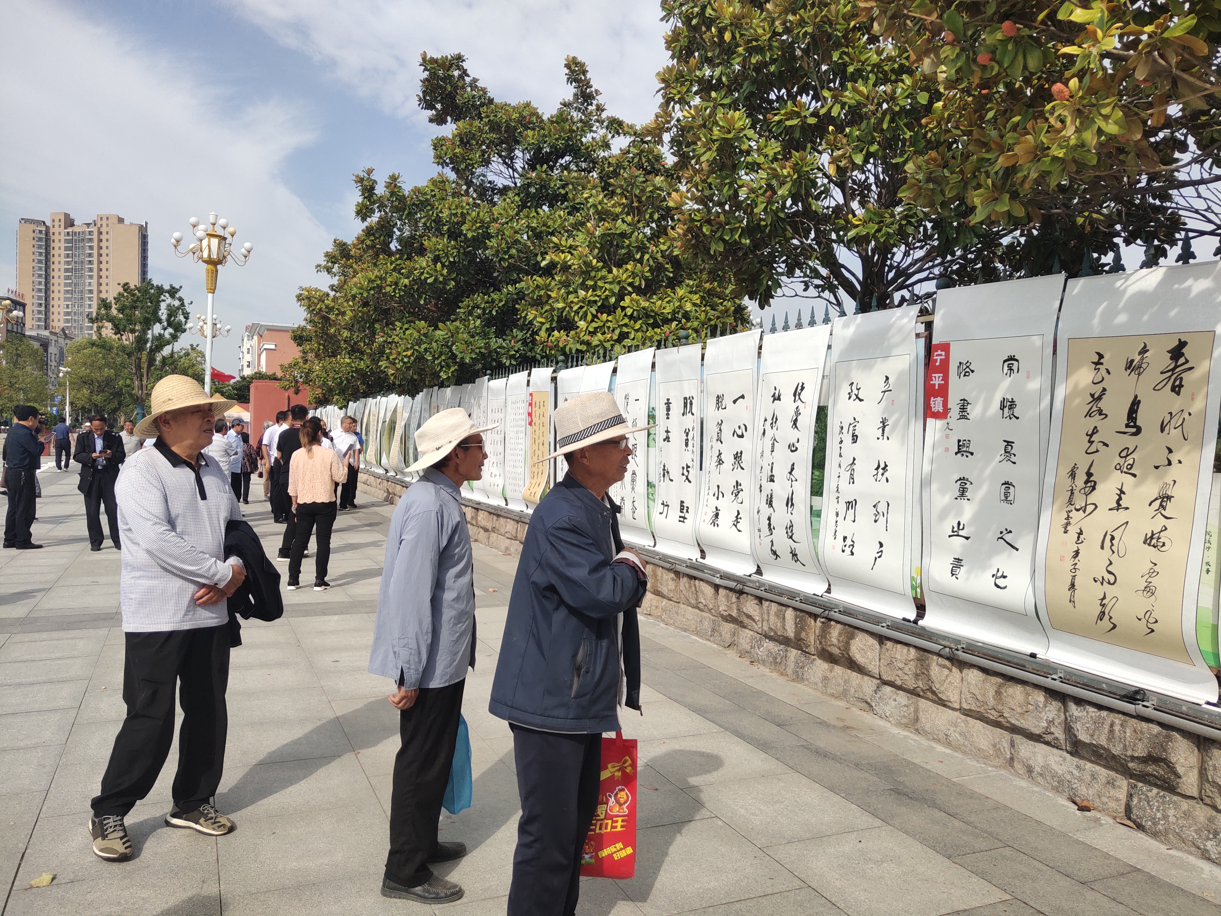 此次書法展以迎“國慶”,歌頌該縣決戰(zhàn)脫貧攻堅、決勝全面小康取得的成效為主題,從23個鄉(xiāng)鎮(zhèn)辦266幅參賽作品中精選出119幅進行展出,這些作品大多出自全縣農(nóng)民群眾之手,楷行隸篆,諸體皆備,流派紛呈,各具特色,代表了該縣當(dāng)代農(nóng)民書法隊伍的較高水平,彰顯了“中國書法之鄉(xiāng)”的綜合實力。此次書法展活動的舉辦不僅進一步堅定文化自信,傳承中華優(yōu)秀傳統(tǒng)文化,繁榮全縣書法藝術(shù),更是為廣大農(nóng)民書法愛好者提供了一個交流學(xué)習(xí)的平臺,他們用書法描繪了祖國的大好河山,歌頌了中國共產(chǎn)黨帶領(lǐng)全國人民取得的豐功偉績,同時也為祖國的生日送上濃濃的祝福。②9