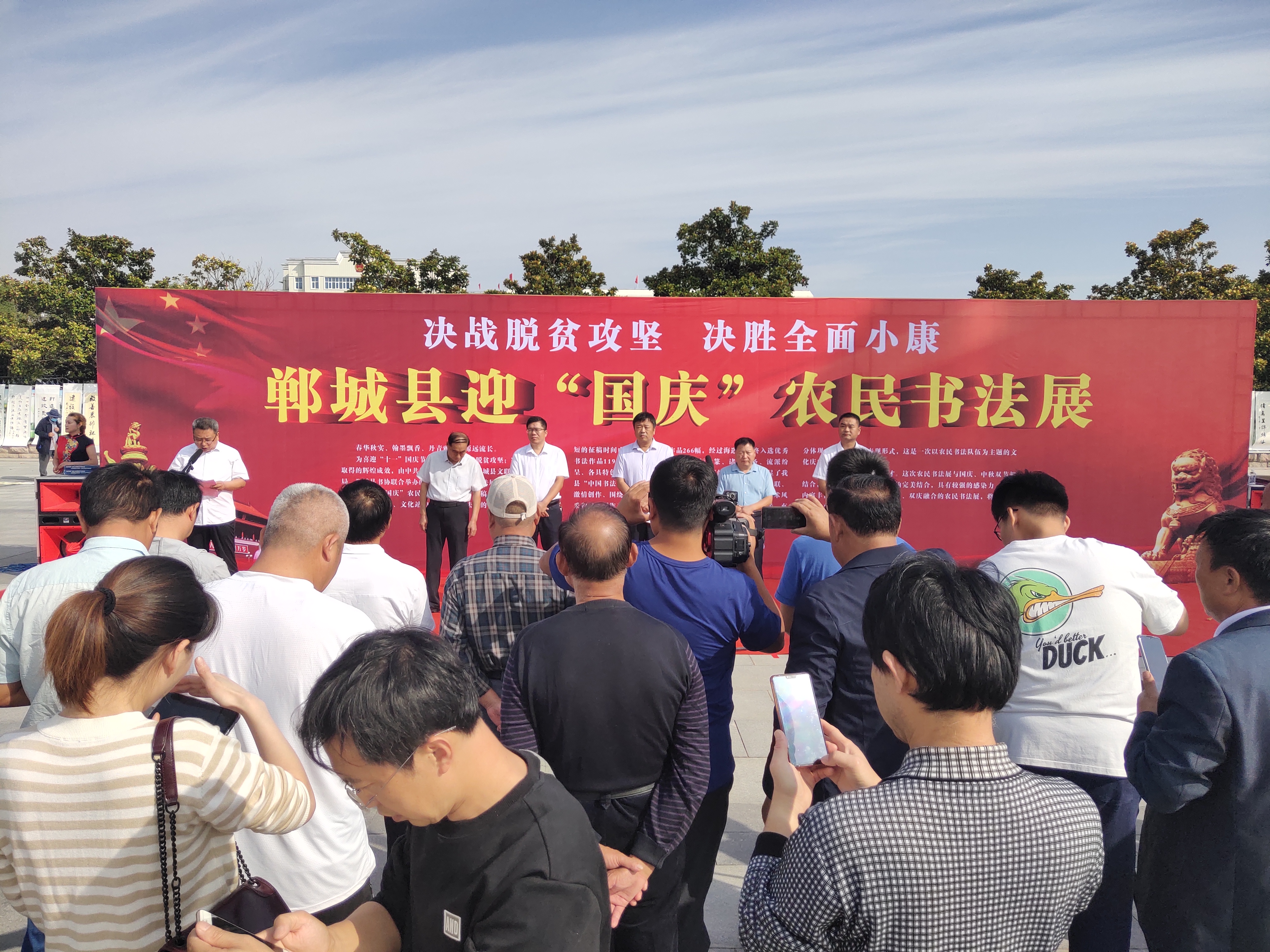 9月28日上午,由鄲城縣委宣傳部、縣文聯(lián)、縣文廣旅局、縣書協(xié)聯(lián)合舉辦的迎“國慶”農(nóng)民書法展在世紀(jì)廣場舉行。該縣人大常委會主任李建軍,縣政協(xié)主席王偉,縣委常委、宣傳部長吳青鋒等出席活動。