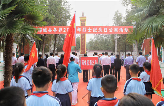 鄲城大地存浩氣,蒼松翠柏祭英烈。9月30日,鄲城縣在烈士陵園舉行2020年烈士紀(jì)念日公祭活動(dòng),市人大常委會(huì)副主任、鄲城縣委書(shū)記羅文閣,縣長(zhǎng)李全林,縣人大常委會(huì)主任李建軍,縣政協(xié)主席王偉等縣四個(gè)班子領(lǐng)導(dǎo),全縣副處級(jí)以上領(lǐng)導(dǎo)干部,縣直各單位負(fù)責(zé)人,23個(gè)鄉(xiāng)鎮(zhèn)辦負(fù)責(zé)人,退役軍人代表、師生代表和社會(huì)各界人士,一同祭奠革命先烈,激勵(lì)全縣上下不忘初心、牢記使命,為鄲城縣高質(zhì)量發(fā)展而不懈奮斗。