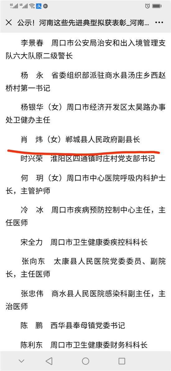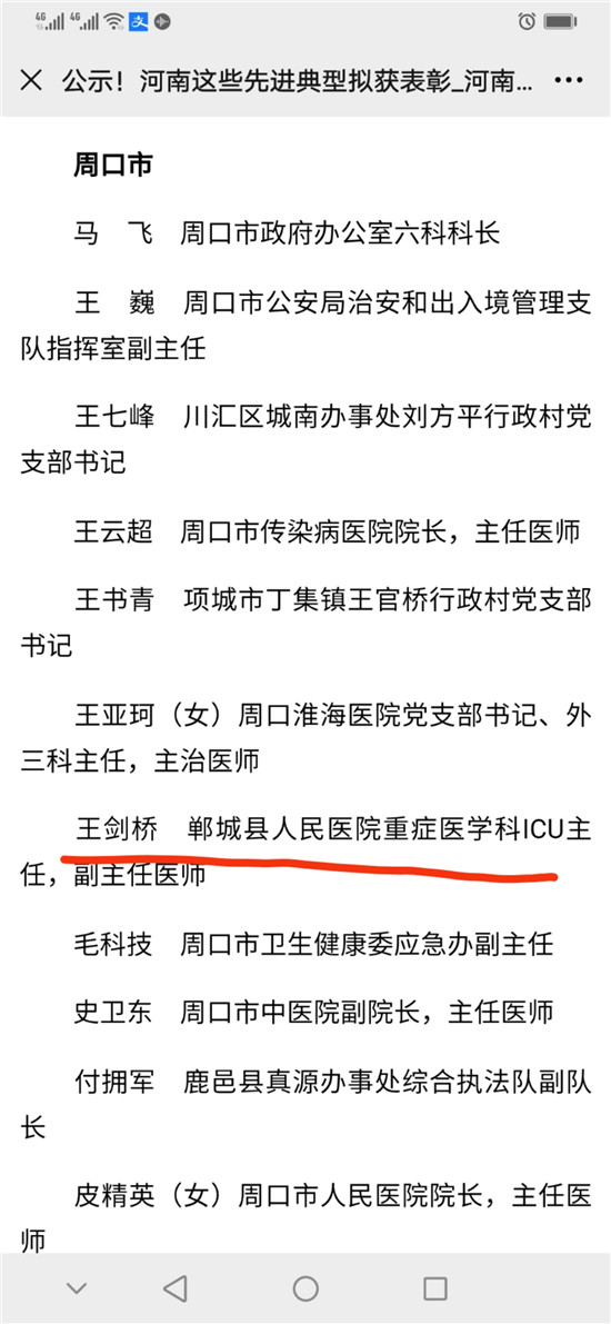 10月10日,河南省委、省政府表彰了一批抗擊新冠肺炎疫情先進(jìn)個人、河南省抗擊新冠肺炎疫情先進(jìn)集體、河南省優(yōu)秀共產(chǎn)黨員、河南省先進(jìn)基層黨組織。其中,鄲城縣副縣長肖煒,縣第二人民醫(yī)院援鄂醫(yī)生、主治醫(yī)師仵福全,縣人民醫(yī)院重癥醫(yī)學(xué)科ICU主任、副主任醫(yī)師王劍橋3位同志,被評為河南省抗擊新冠肺炎疫情先進(jìn)個人。