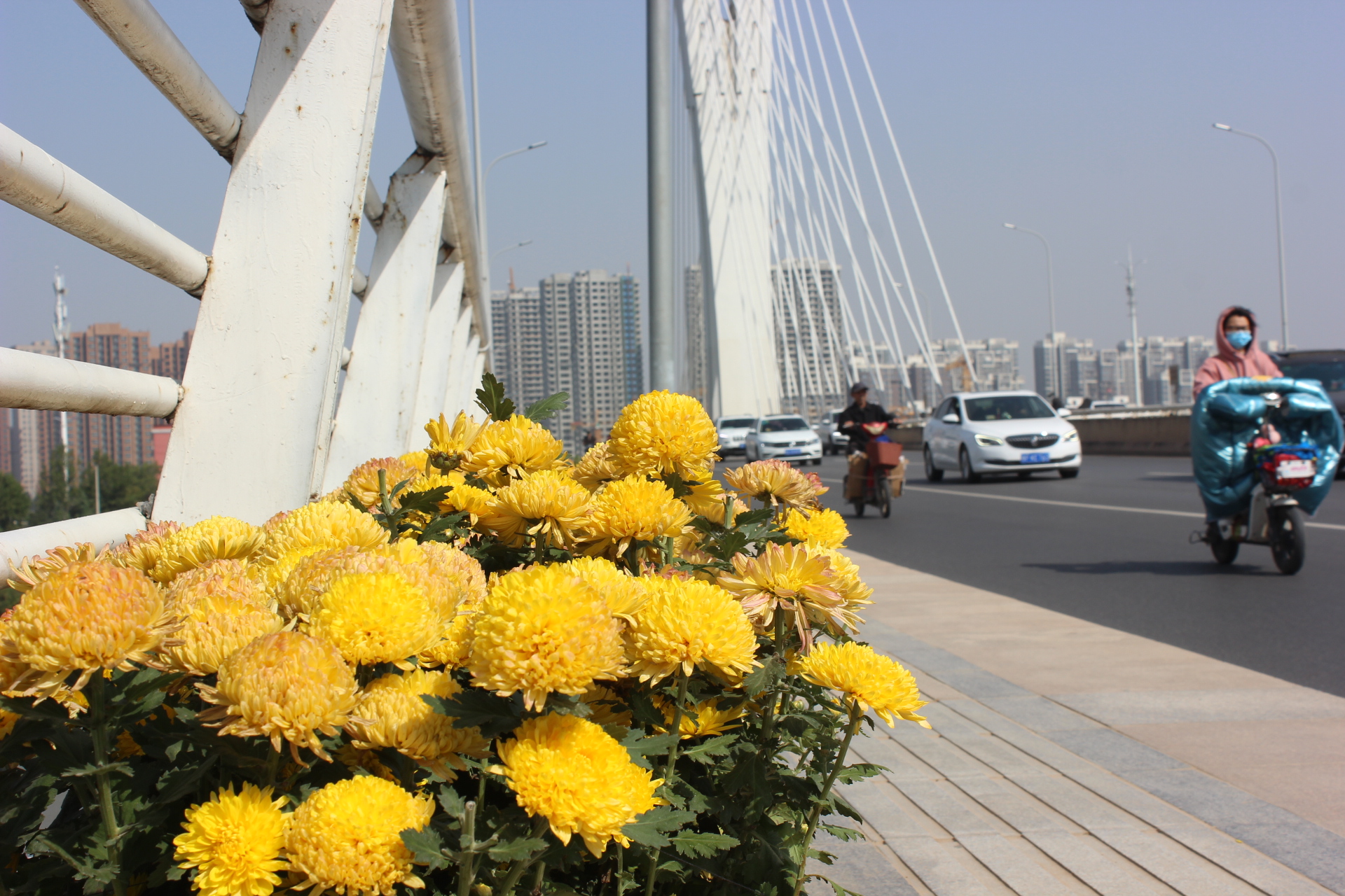 圖2 大慶路橋上金菊盛開更顯秋季生機 見習記者 孫靖 攝