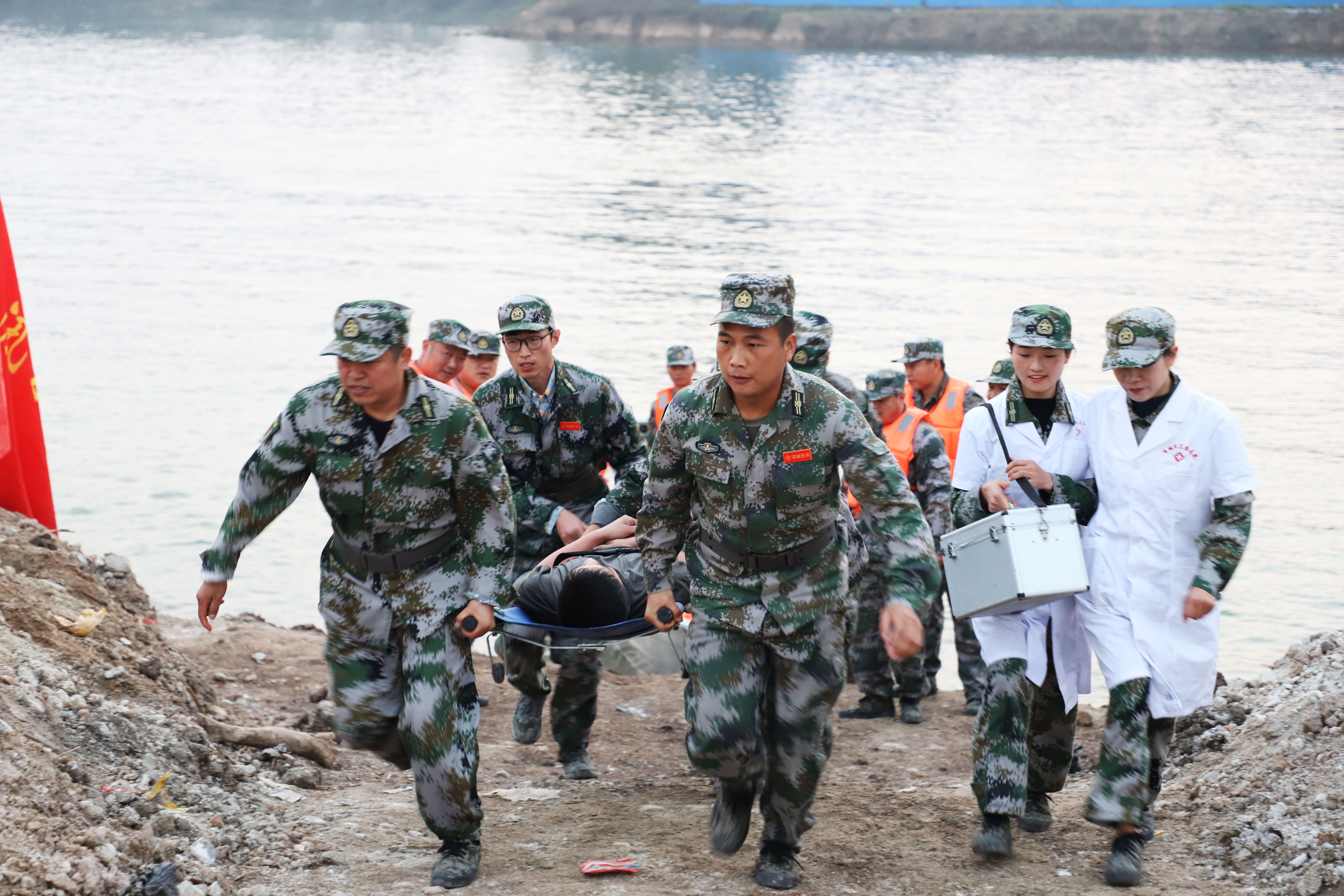 演練分三個環(huán)節(jié),一是隊員駕駛沖鋒舟搶救被洪水圍困的群眾;二是用無人機和沖鋒舟立體搜索落水群眾;三是使用拋投器和沖鋒舟對溺水人員進行救援,然后由醫(yī)療救護人員現(xiàn)場進行心肺復蘇,120救護車緊急將人送往醫(yī)院。通過演練,讓每個隊員都熟練掌握沖鋒舟的操作技能,使用拋投器投送救生圈的方法和要領,無人機搜救的技巧運用,以及現(xiàn)場緊急醫(yī)療救護的本領和方法,從而從實戰(zhàn)的角度,進一步錘煉民兵在防汛抗洪中緊急應變和處理各種復雜問題的能力。