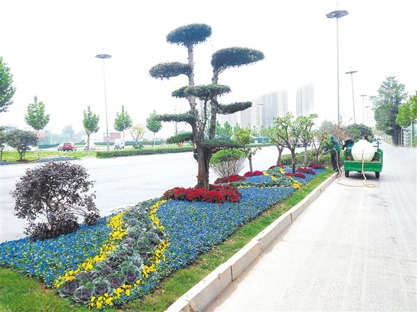 紅色、黃色、紫色的花兒,還有造型別致的景觀樹……10月21日,記者在周口中心城區(qū)七一東路的一處綠化帶內(nèi)看到一組造型別致的景觀造型,扮靚了綠化帶,給人耳目一新的感覺。記者 張洪濤 攝