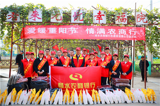 這是商水農(nóng)商銀行紀委書記、監(jiān)事長張宇帶領(lǐng)該行志愿者服務(wù)隊正在開展“愛暖重陽節(jié) 情滿農(nóng)商行”走訪慰問活動。