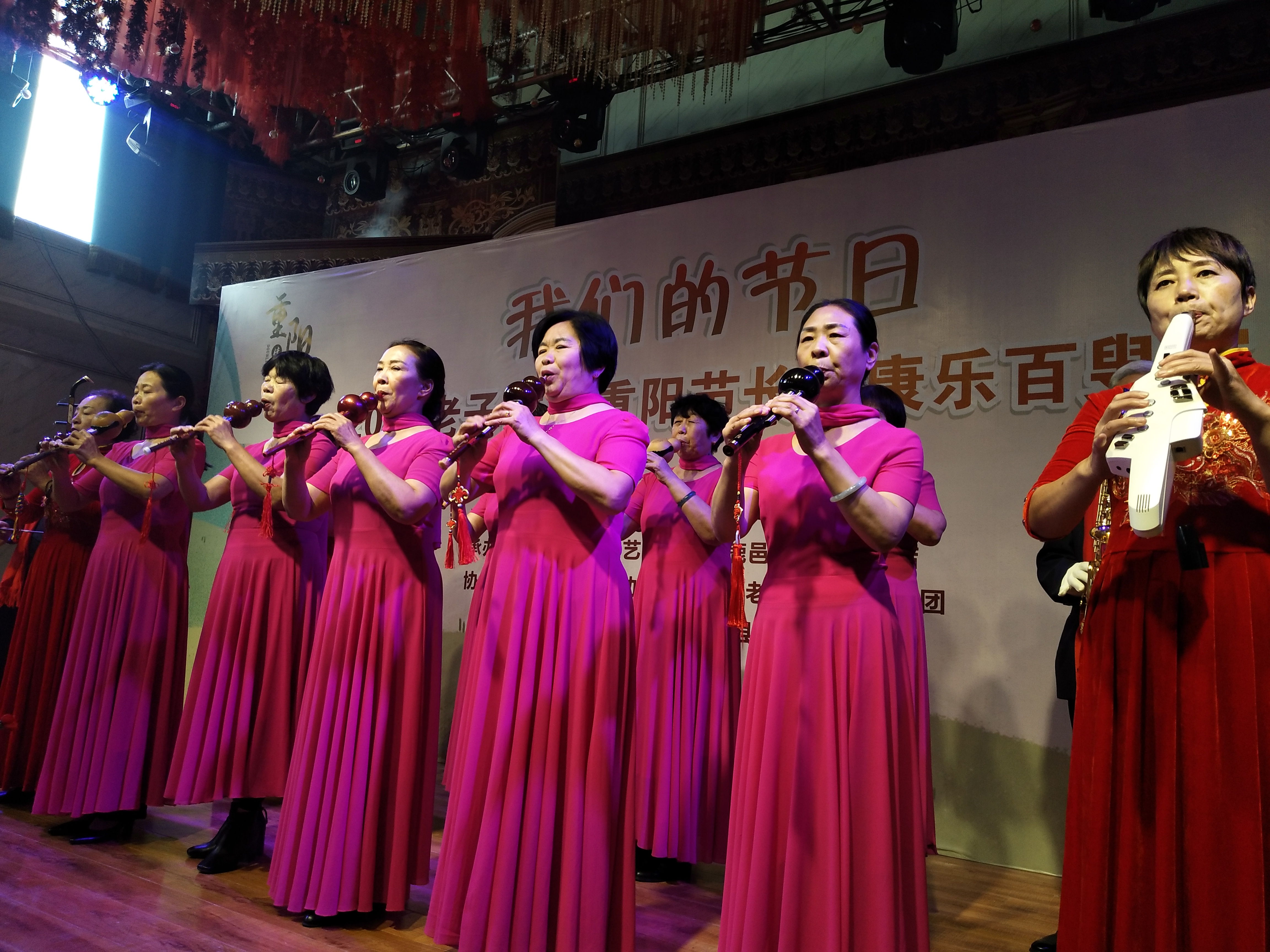 鹿邑縣舉辦的“我們的節(jié)日——2020老子故里長(zhǎng)安康樂(lè)百叟宴”于上午11時(shí)開(kāi)始,來(lái)自縣曲藝家協(xié)會(huì)、縣詩(shī)詞協(xié)會(huì)、縣書畫協(xié)會(huì)的老藝術(shù)家們進(jìn)行才藝展示,首先是縣老干部大學(xué)葫蘆絲隊(duì)表演了葫蘆絲合奏《花好月圓》《九月九的酒》,縣詩(shī)詞協(xié)會(huì)的翟明、張明山、林建華分別放聲朗誦了《重陽(yáng)禮贊》《我愛(ài)仙鄉(xiāng)的土地》《歡聚在長(zhǎng)安》,而縣曲藝家協(xié)會(huì)的史云龍表演的墜子《王華買爹》更是別有風(fēng)情……