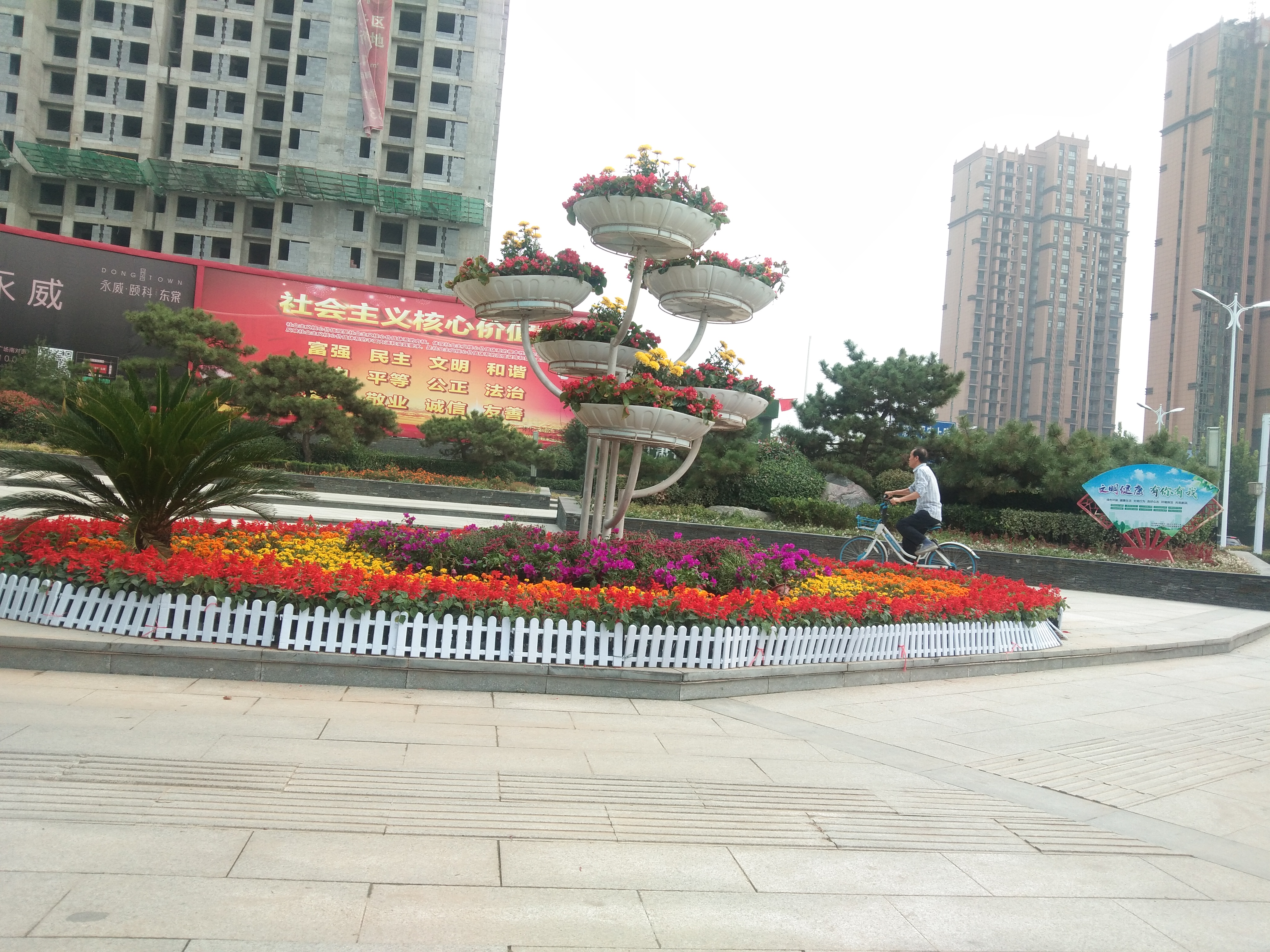 10月29日,記者在周口中心城區(qū)文昌大道與大慶路交叉口看到,一個(gè)大型花架出現(xiàn)在街頭游園內(nèi),上面各種美麗的花兒裝點(diǎn)著不大的游園,給市民休閑娛樂(lè)營(yíng)造了良好的環(huán)境。①9