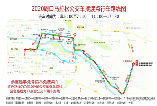 此外, 記者還從大賽組委會(huì)獲悉,2020周口馬拉松比賽公交車擺渡點(diǎn)行車路線圖也已公布,參賽選手憑號(hào)碼布可以免費(fèi)乘車,去時(shí)乘車路線為:文明路口——工農(nóng)路口——大慶路停車點(diǎn)——慶豐街——景園停車點(diǎn)——奧蘭停車點(diǎn)——公務(wù)員A區(qū)停車點(diǎn)——建業(yè)北門停車點(diǎn)周口大道——碧桂園停車點(diǎn)——堤頂北路——武盛大道——引黃調(diào)蓄風(fēng)景區(qū)門口擺渡車乘車起點(diǎn);回來時(shí)路線為:引黃調(diào)蓄風(fēng)景區(qū)——武盛大道——堤頂北路——碧桂園停車點(diǎn)——周口大道——慶豐街——建業(yè)北門停車點(diǎn)——公務(wù)員A區(qū)停車點(diǎn)——奧蘭停車點(diǎn)——景園停車點(diǎn)——大慶路停車點(diǎn)——七一路,其中班車運(yùn)行時(shí)間為早6:00至7:10,11:00至17:30。因場(chǎng)地受限,活動(dòng)當(dāng)天的停車區(qū)域分為兩處,一是引黃調(diào)蓄風(fēng)景區(qū)西門南北兩側(cè)便道;二是風(fēng)景區(qū)西門向南路西600米處東西無名路。