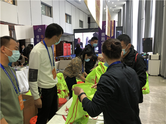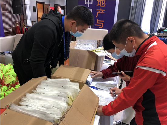 11月12日上午,記者在位于八一大道與文昌大道交叉口的佳利地產(chǎn)營(yíng)銷中心門口看到,今年由于疫情管控的需要,參賽選手領(lǐng)取裝備前需要先展示自己的健康碼,并配合醫(yī)護(hù)人員測(cè)量體溫,進(jìn)入現(xiàn)場(chǎng)還需戴口罩。在一樓活動(dòng)大廳,來自周口馬拉松協(xié)會(huì)的志愿者們先為選手確認(rèn)身份信息,再根據(jù)選手的身材、體型為其發(fā)放含有不同型號(hào)運(yùn)動(dòng)衣的背包。最終,每個(gè)參賽選手都會(huì)領(lǐng)到一個(gè)熒光綠色的小背包,里面裝有號(hào)碼布、參賽長(zhǎng)袖T恤、存衣包、手套、一次性風(fēng)雨衣和一本官方手冊(cè)等。