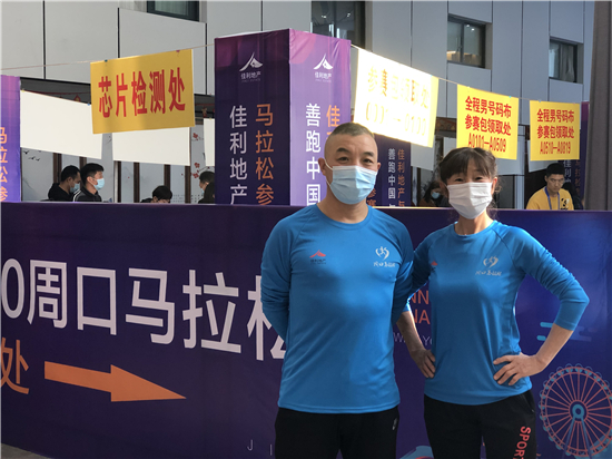 活動(dòng)現(xiàn)場(chǎng)前來領(lǐng)取賽前裝備的人源源不斷,有的是朋友結(jié)伴而來,有的趁工作間隙而來,還有的帶著孩子前來,十分熱鬧。王勝利先生今年是第四次參加周口馬拉松賽了,他說:“2017年我跑了5小時(shí)30分,2018年是4小時(shí)28分,2019年跑了4小時(shí)17分,通過這幾年堅(jiān)持不懈地鍛煉,今年我想爭(zhēng)取跑到4個(gè)小時(shí)以內(nèi),不跟別人比,主要是不斷地自我超越!”今年的周口馬拉松賽還吸引了許多“都市麗人”參加,劉女士就是其中一員,“我今年36歲了,平時(shí)就非常喜愛健身、長(zhǎng)跑,今年是我第一次報(bào)名參加馬拉松賽,希望能夠挑戰(zhàn)自己?!彼嬖V記者。