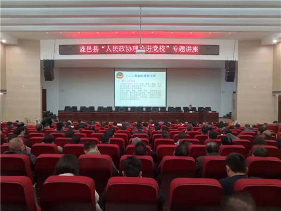 11月27日上午,河南省政協(xié)提案委員會(huì)辦公室主任劉俊江為鹿邑縣黨校2020年秋季科級(jí)干部意識(shí)形態(tài)工作專題研修班、青年干部培訓(xùn)班學(xué)員、縣政協(xié)常委、部分政協(xié)委員、政協(xié)機(jī)關(guān)干部共計(jì)360多人作了精彩生動(dòng)的專題報(bào)告。