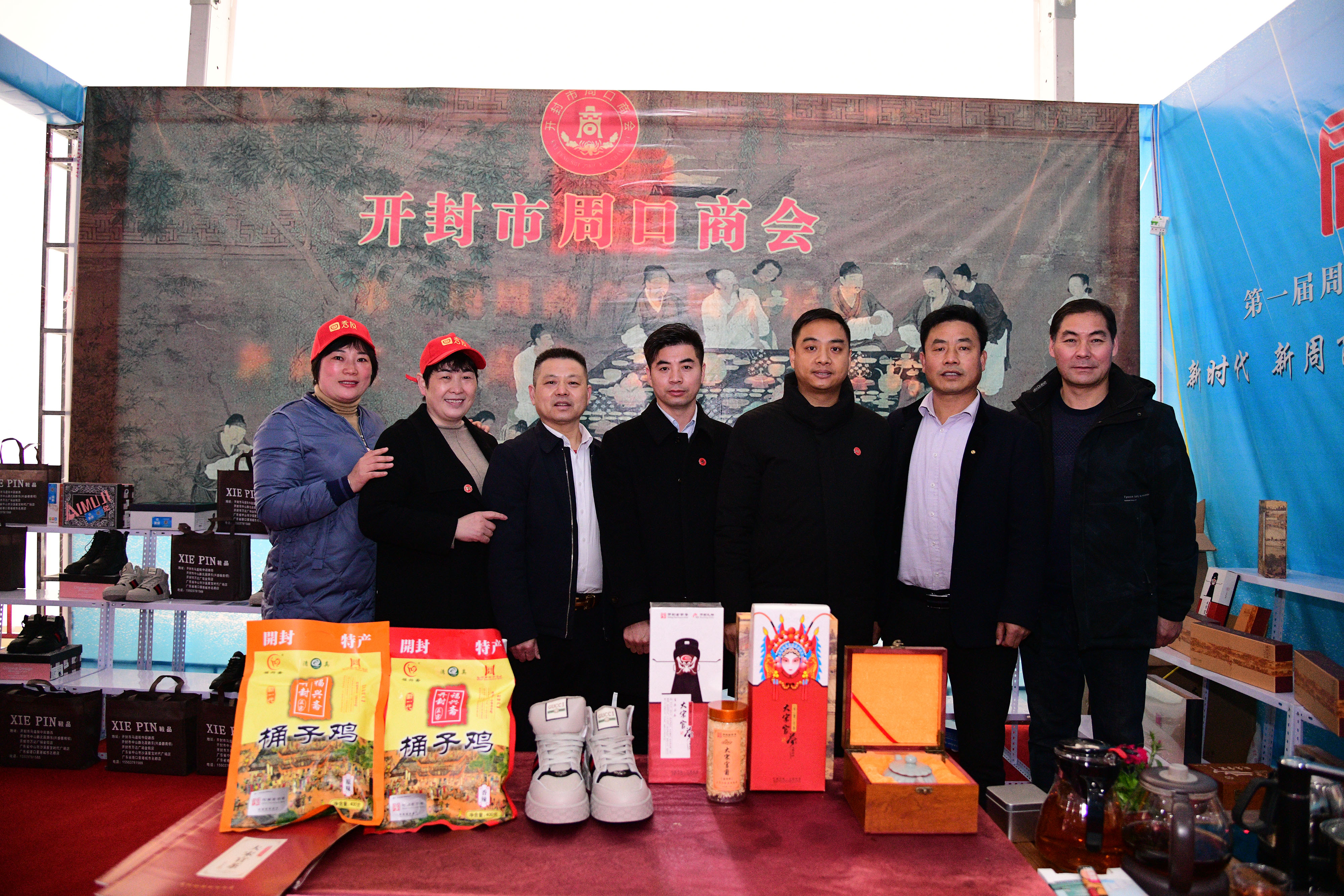 11月29日,在首屆周商大會上,在第126展位上,開封市周口商會派出六位代表齊聚這里,帶著深耕開封城多少年的成果,意氣風發(fā)地向家鄉(xiāng)展示他們的風采。他們分別是“大宋官茶”老總牛華麗,“大宋官瓷”老總董俊 ,福興齋桶子雞老總馬勇 ,全屋家具定制工廠“葉林森品牌”的兩位老總之一的岳偉,“鞋品”鞋老總侯建峰,電商服務平臺“秀商時代”老總王俊華。他們代表開封市周口商會的194家企業(yè)代表,和家鄉(xiāng)人見面,平時他們身在開封,深耕商界,乘風破浪,促進了當?shù)亟?jīng)濟繁榮,也為周口帶來財富。