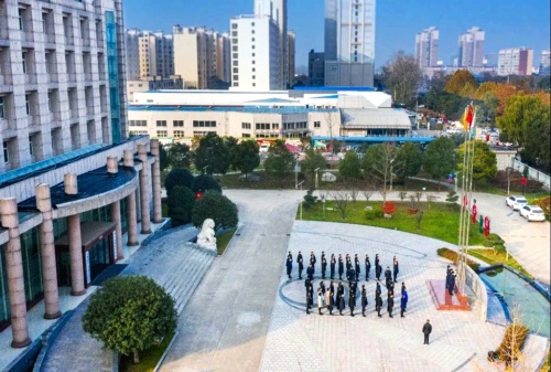 當(dāng)日上午9時,周口煙草市局(公司)機關(guān)及營銷中心全體人員在市局院內(nèi)參加升國旗儀式。護旗隊踏著整齊的步伐護送國旗,伴隨著莊嚴(yán)的國歌聲,五星紅旗冉冉升起。
