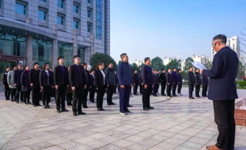 參加儀式的全體干部職工面向國旗莊嚴(yán)肅立、齊唱國歌,隨著國旗的徐徐上升,國家憲法日活動序幕由此展開。升旗儀式旨在激發(fā)干部職工學(xué)習(xí)憲法、維護憲法的熱情,厚植愛國情懷,以新面貌、新氣象、新作為砥礪前行。