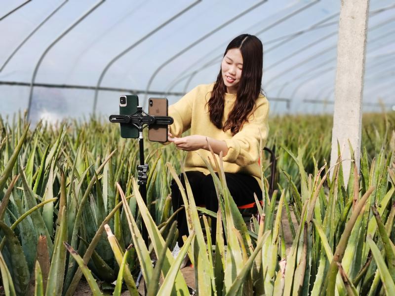 12月7日,川匯區(qū) 華耀城辦事處葛灣村孫立偉的蘆薈大棚里在進(jìn)行直播賣貨。周口市川匯區(qū) 華耀城辦事處葛灣村發(fā)展種植大棚蘆薈,成為當(dāng)?shù)氐奶厣?jīng)濟(jì)產(chǎn)業(yè),并成立集體經(jīng)濟(jì)組織合作社,全村統(tǒng)一規(guī)劃,結(jié)合市場需求規(guī)律,由合作社與企業(yè)簽訂訂單或通過電商平臺進(jìn)行網(wǎng)絡(luò)銷售。①15