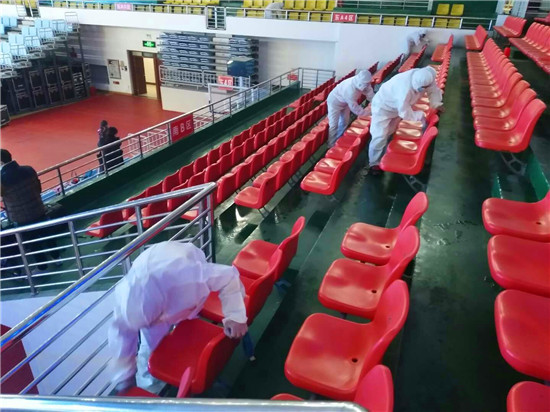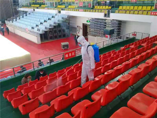 為確保疫情防控工作,保障第一屆周商大會順利進行,11月26日至27日,30余名工作人員對市體育館內(nèi)外、周商產(chǎn)品展示展覽區(qū)進行全面消毒殺菌,包括座椅,走廊,欄桿,門把手等,確保周商大會消殺工作不留死角。周口日報·周道客戶端見習記者 喬小納 攝