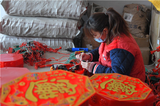 放鞭炮和吃餃子都是中國(guó)傳統(tǒng)年味兒的重要組成部分。近年來(lái),燃放鞭炮帶來(lái)的環(huán)境污染以及事故隱患等問(wèn)題日益突出,全國(guó)各個(gè)地市都相繼出臺(tái)了限制燃放傳統(tǒng)煙花炮竹的相關(guān)政策和規(guī)定。怎么樣既滿足人們延續(xù)傳統(tǒng)習(xí)俗的愿望,又與環(huán)保安全相呼應(yīng),讓“年味兒”更足?商水縣魏集鎮(zhèn)產(chǎn)業(yè)扶貧基地一帆工藝制作工廠總經(jīng)理賀潘海給出了答案——電子鞭炮。