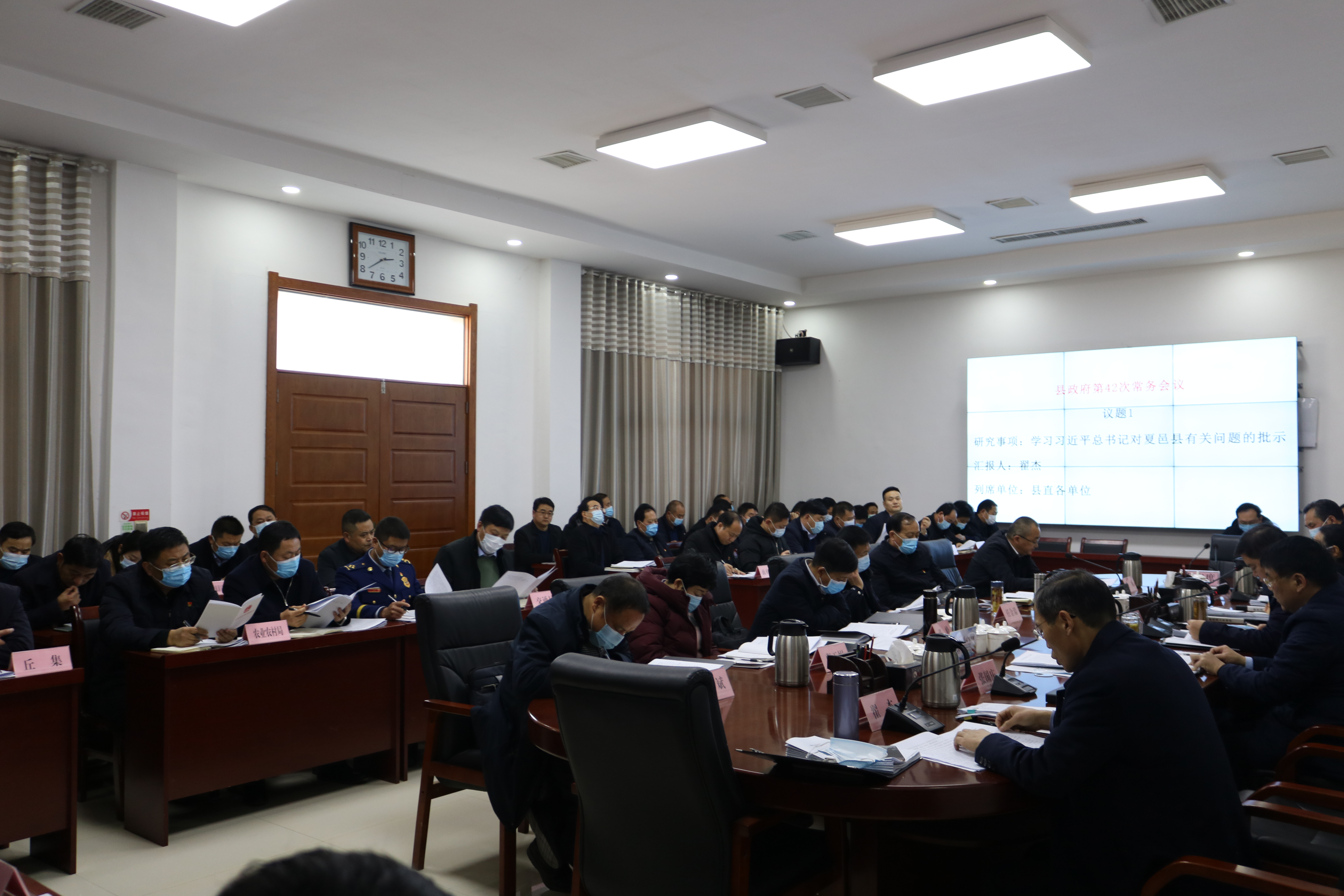 會議先后傳達學(xué)習(xí)了習(xí)近平總書記對夏邑縣有關(guān)問題的批示精神、中央經(jīng)濟工作會議精神;學(xué)習(xí)了關(guān)于我省黨政代表團赴上海、江蘇、浙江學(xué)習(xí)考察情況的報告以及河南省消防安全責任制實施辦法;聽取了關(guān)于2020年民生實事完成情況的匯報、關(guān)于政府系統(tǒng)落實省委巡視整改工作情況的匯報、關(guān)于鹿邑縣2020年環(huán)保攻堅工作情況匯報、關(guān)于鹿邑縣2020年安全生產(chǎn)工作情況匯報、關(guān)于鹿邑縣秋冬季新冠肺炎疫情防控工作匯報、關(guān)于成立鹿邑縣林業(yè)生態(tài)發(fā)展有限公司的匯報、關(guān)于引江濟淮工程棄土處置問題的意見匯報。