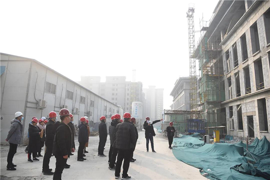 當(dāng)日上午,受院長于健委托,院領(lǐng)導(dǎo)張廣海、葉達(dá)林、王文鋒、王成坤帶領(lǐng)醫(yī)政、護(hù)理、控感等相關(guān)職能科室負(fù)責(zé)人,一行20余人到建設(shè)工地現(xiàn)場察看。施工方技術(shù)人員詳細(xì)介紹了門診樓、病房樓等各樓層的功能定位、科室布局、水暖線路等,雙方就一些細(xì)節(jié)問題進(jìn)行深入交流。