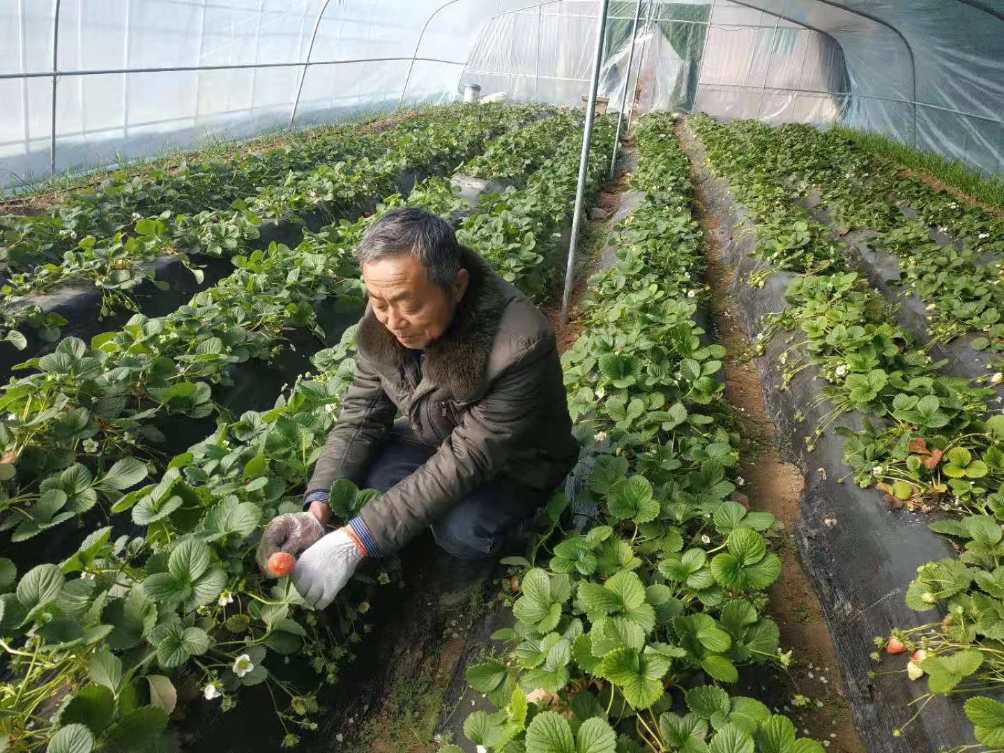 功夫不負(fù)有心人,成功眷顧有志人。草莓紅了,采摘者和訂單接鍾而至,李為昌滿臉皺紋也笑成了一朵花。他說:“現(xiàn)在有20個(gè)大棚,每個(gè)棚占地640平方米,我們村23戶貧困戶每家出一個(gè)勞力參與勞務(wù)。他們?nèi)〉昧说谝皇纸?jīng)驗(yàn),以后就可以自己干,我給他們提供技術(shù)、物資和平臺(tái)”