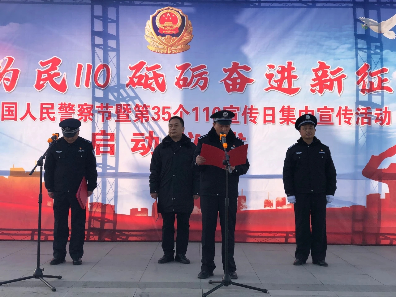 為慶祝首屆中國人民警察節(jié),迎接全國第35個(gè)“110宣傳日”,在全社會(huì)營造濃厚宣傳氛圍。1月10日上午,鹿邑縣公安局在弘道苑廣場(chǎng)舉辦首屆人民警察節(jié)暨110宣傳日集中宣傳活動(dòng)。縣委常委、政法委書記張國慶,縣政府副縣長(zhǎng)、公安局長(zhǎng)任金瑞出席活動(dòng)并講話,縣局黨委委員、民警代表,12345公眾服務(wù)熱線、金融、電信、社會(huì)公益組織等單位參加。