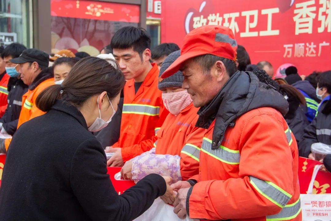 大寒節(jié)氣,當我們還在溫暖的被窩里,環(huán)衛(wèi)工人已經(jīng)開始清掃城市街道,公安民警正在值守夜班,一座城市的平安和美麗都離不開他們默默的付出。為了表達感謝,萬順達廣場精心熬制了一鍋臘八粥,并準備了食品、抗疫用品、日用品等,在冬日的寒冷里,給他們送去春天般的溫暖。