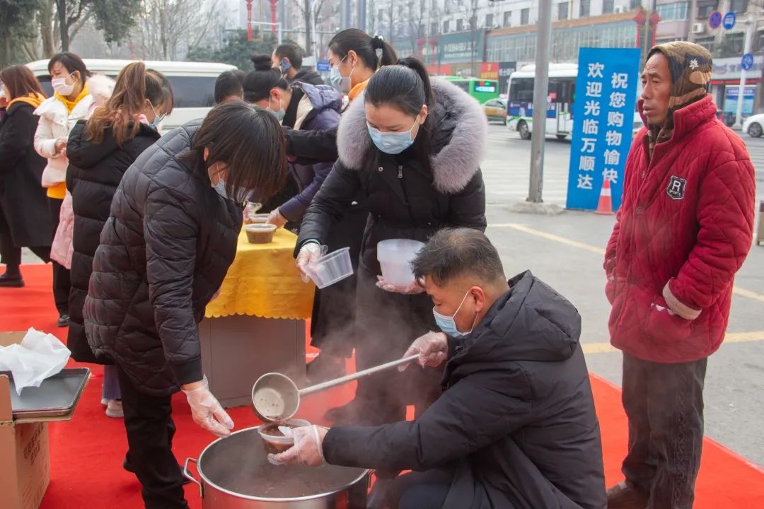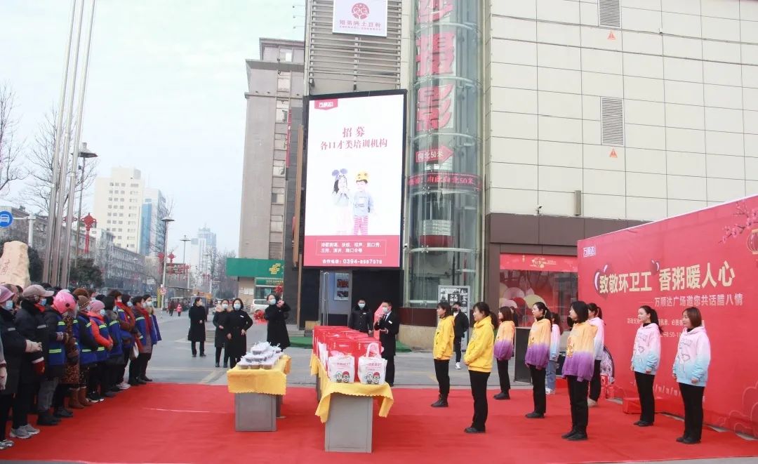 本次活動的主題是“一碗臘八粥,溫暖一座城”。當忙碌一陣后的環(huán)衛(wèi)工人來到萬順達廣場門前時,萬順達廣場的工作人員一曲《好運來》和《你笑起來真好看》,讓整日忙碌的做著重復(fù)而又枯燥工作的環(huán)衛(wèi)工人們臉上笑開了花。