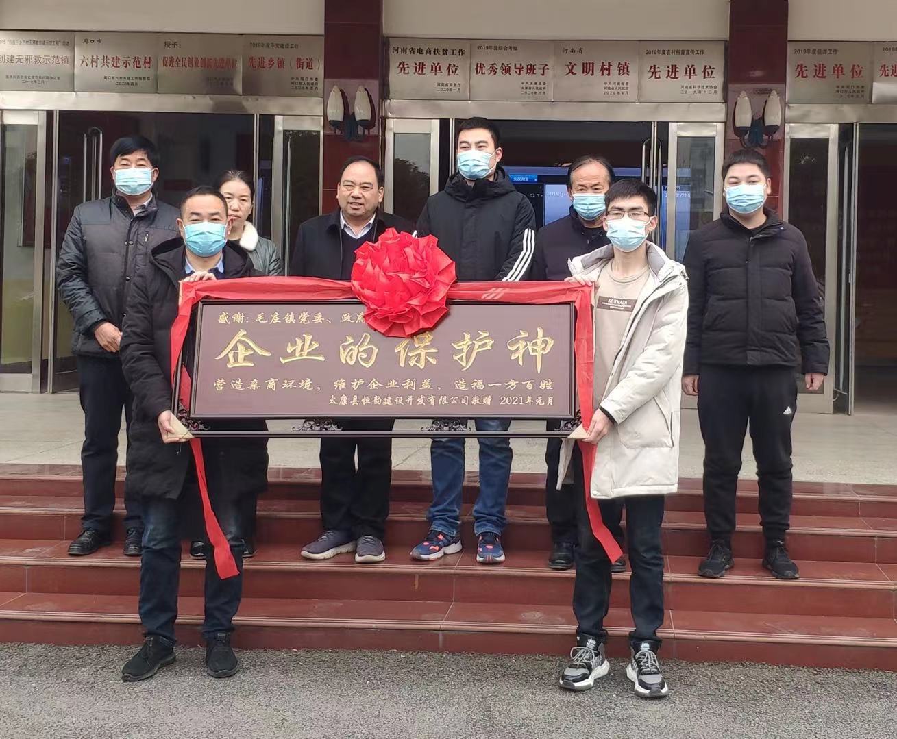 1月22日上午,太康縣毛莊鎮(zhèn)政府大門前人頭攢動,人聲鼎沸。在眾人的嘖嘖稱贊中一塊鐫刻著“企業(yè)的保護神”的牌匾被遞交到該鎮(zhèn)工作人員手中。