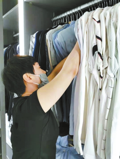 比如整理衣柜時(shí),需要把所有的衣服整理歸類,讓客戶決定去留,然后按照顏色、搭配等進(jìn)行整理,按照客戶的生活習(xí)慣放入衣柜,還會(huì)教客戶物品歸位的原則和技巧。“全程需要佩戴口罩和手套?!睆埩嵴f。