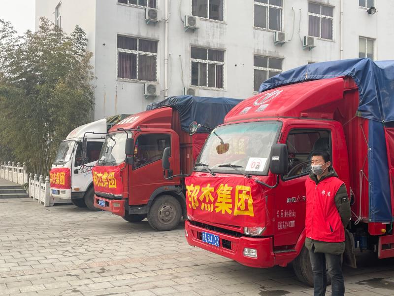 據(jù)工作人員介紹,本次馳援河北石家莊,河南邦杰集團(tuán)、湖北周口商會、湖北許平漯商會、新欣福珍集團(tuán)共組織募捐了近1萬斤優(yōu)質(zhì)東北大米、1000箱方便面、 500箱鴨蛋、10萬只口罩、近1萬件邦杰牛肉腸等近百萬元生活急需的食品和防疫物資?!榜Y援石家莊抗疫物資車隊(duì),出發(fā)!”隨著一聲令下,7輛裝滿物資的專車啟動,送往石家莊市最急需的地方。