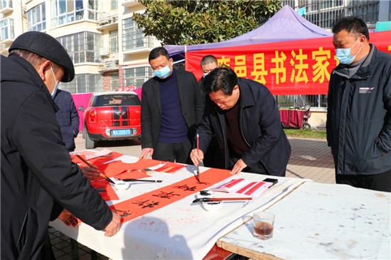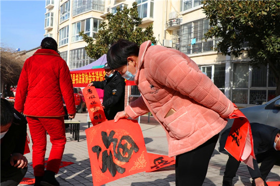 “春節(jié)前夕,縣書法家協(xié)會(huì)為群眾傾心打造文化盛宴,組織若干場(chǎng)義寫春聯(lián)進(jìn)社區(qū)活動(dòng),旨在弘揚(yáng)祖國(guó)傳統(tǒng)文化,豐富群眾文化生活?!甭挂乜h書法家協(xié)會(huì)主席韓文甫說(shuō)。