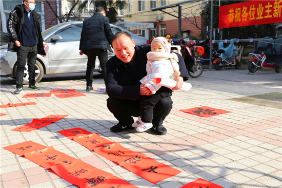 書墨飄香,春聯(lián)有情?;菁扒Ъ胰f(wàn)戶的福字、春聯(lián),滿載著祝福,讓小區(qū)居民充分感受到了溫暖。②8