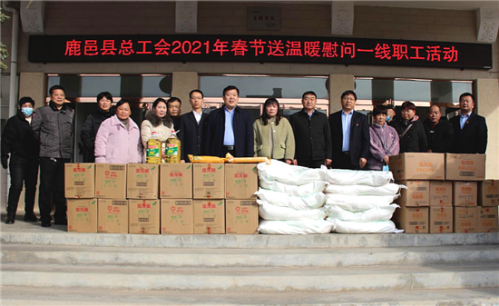 2月1日, 鹿邑縣總工會(huì)組織開展“冬送溫暖”慰問活動(dòng)。縣人大常委會(huì)副主任、縣總工會(huì)主席王新民,縣總工會(huì)黨組書記、常務(wù)副主席武超參加活動(dòng),全體班子成員陪同慰問。