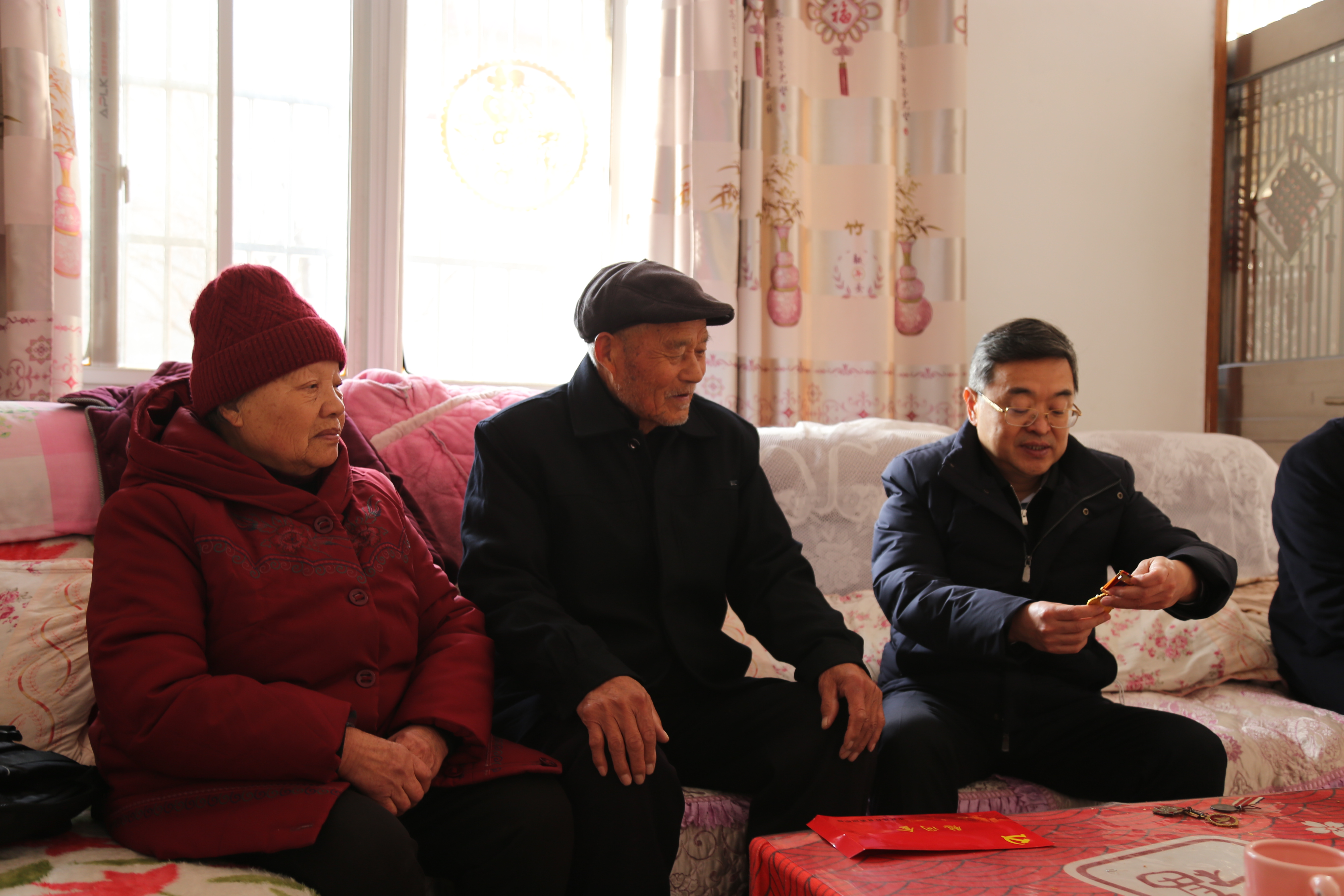 在老黨員卜洪賀家中,皇甫立新與他親切交談,詳細詢問他的身體和生活情況,感謝他為黨和人民所作出的貢獻,祝福他身體健康、春節(jié)快樂,并為他送去了慰問金和慰問品。