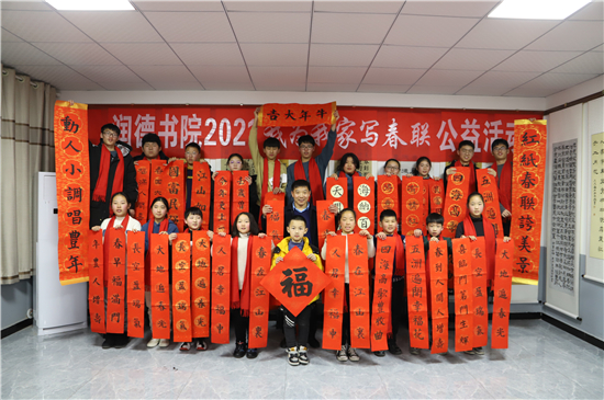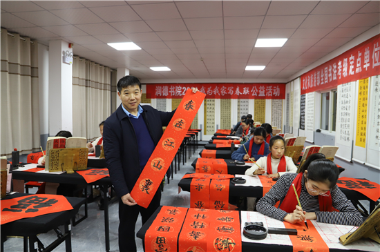 “春聯(lián)是我們中華民族獨有的文化符號,象征著喜慶,蘊含著吉祥。我為我家寫春聯(lián)公益活動具有很強的廣泛性、群眾性、公益性,送祝福、亮成績與弘揚傳承中華優(yōu)秀傳統(tǒng)文化相結(jié)合,在學(xué)生心中樹立了文化自信?!标悈顷懶牢康卣f。