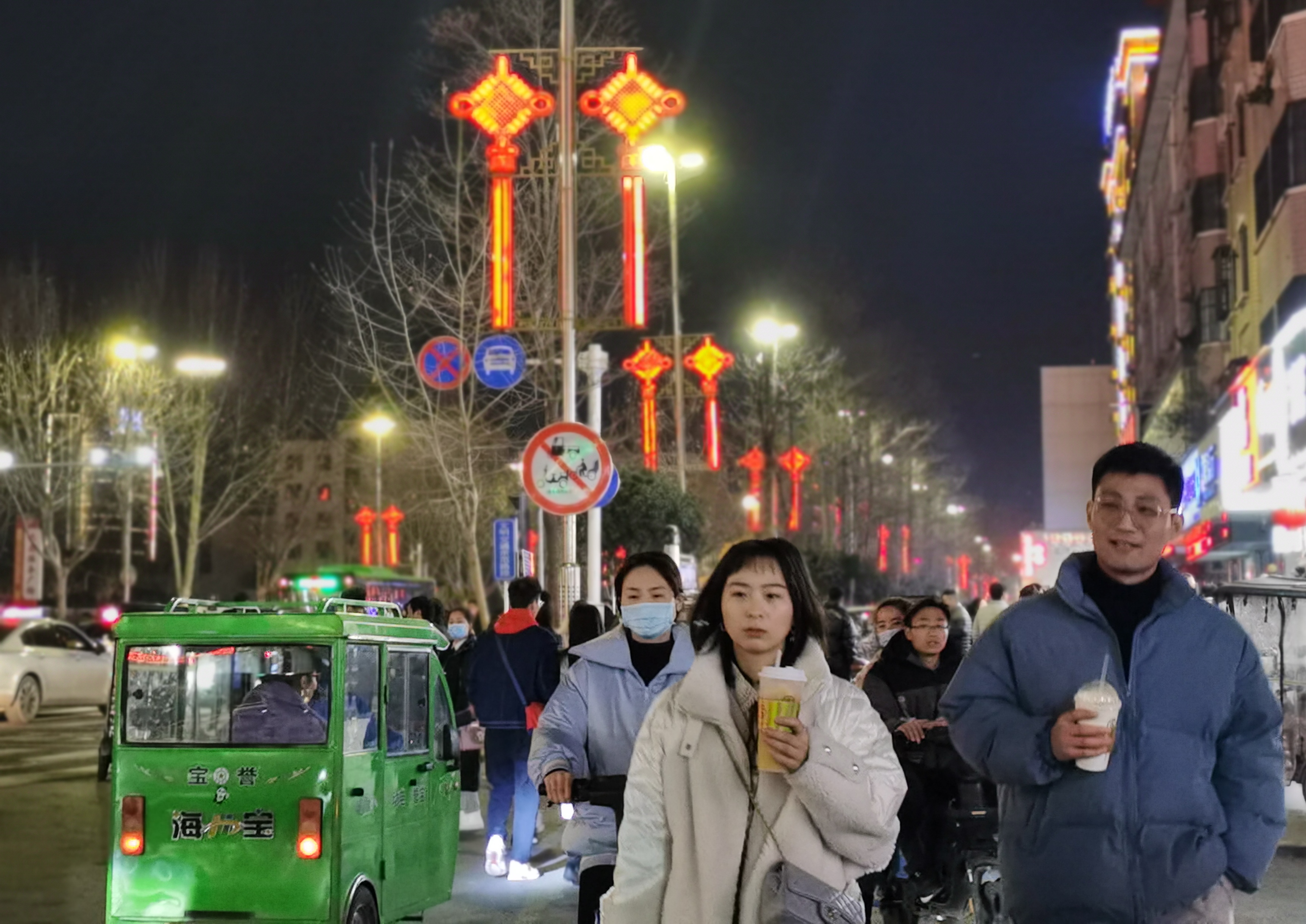 2021年春節(jié)將至,為給大家營(yíng)造愉悅、喜慶、歡樂(lè)的節(jié)日氛圍,中心城區(qū)七一路掛上了中國(guó)結(jié)造型的彩燈,兩邊的商店也在門(mén)口掛起了各種紅燈籠。夜幕降臨后,紅彤彤的燈籠亮起來(lái),街道變得絢麗多彩,把市區(qū)裝點(diǎn)得年味十足。②7