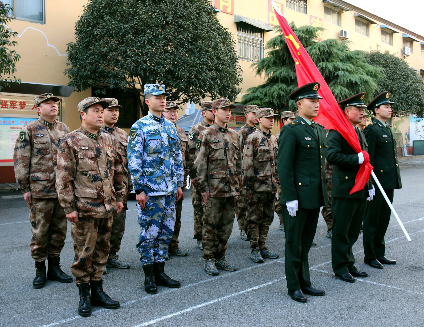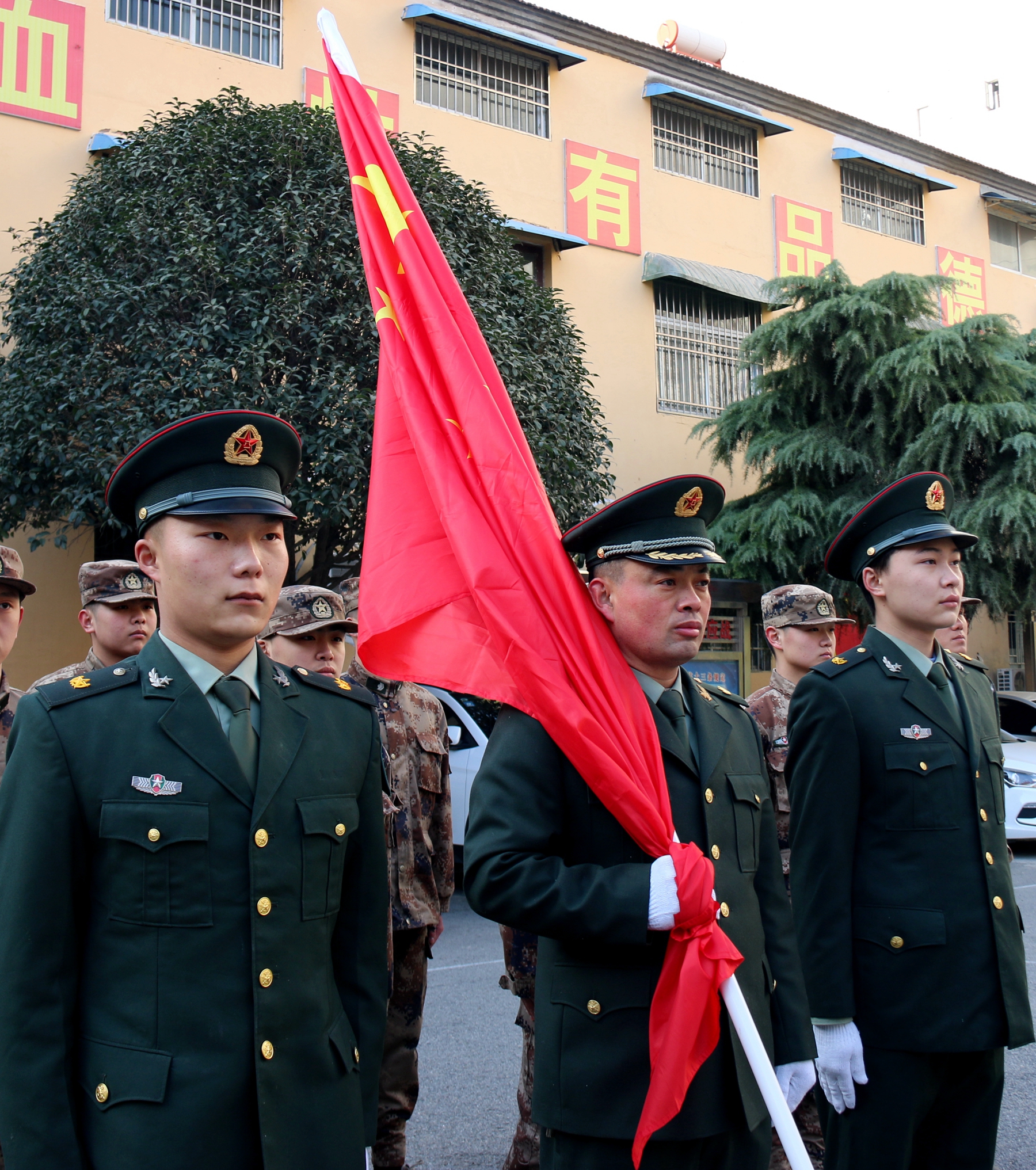 為激發(fā)官兵扎根基層、愛國奉獻和牢記強軍目標、獻身武裝工作實踐的政治熱情,該部決定在春節(jié)舉行升國旗儀式?!吧龂?,既是一次儀式教育,更是一次愛國主義教育,凝聚了官兵愛國情、報國志。激勵大家時刻牢記習主席建軍指示要求,以時不我待的精神投入到實戰(zhàn)化練兵備戰(zhàn),扛起當代國防動員的使命擔當。”該部政委李峰如此說。